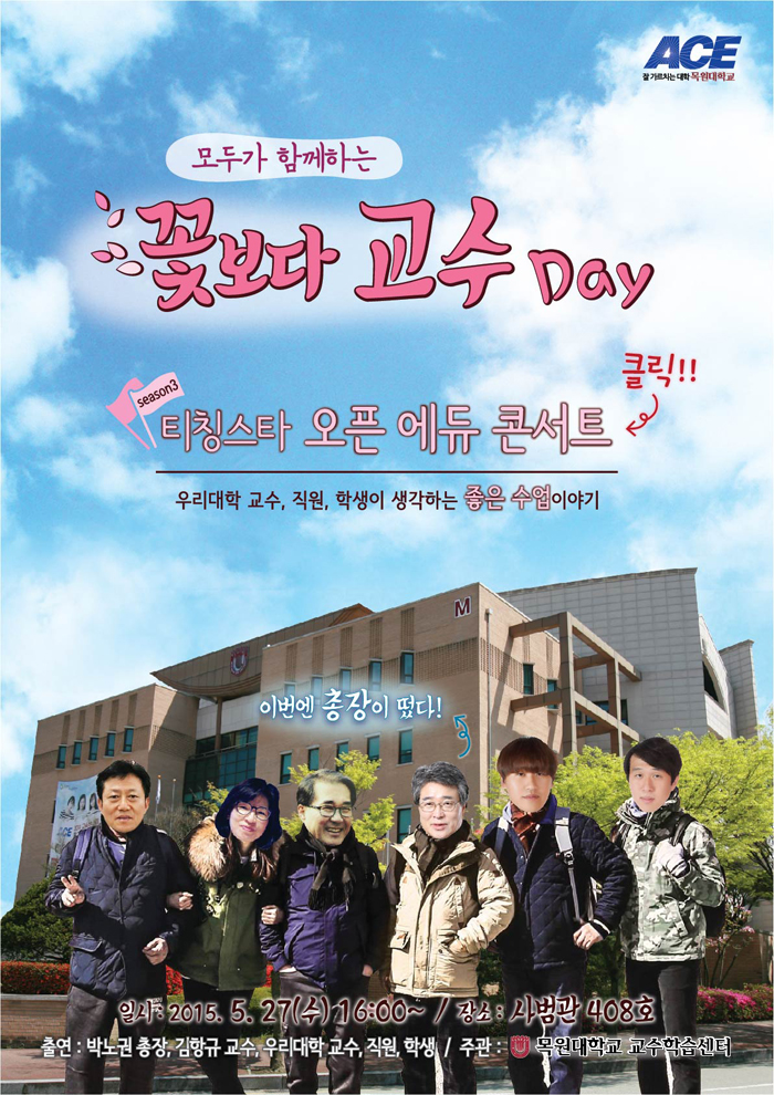 우리 대학 교수학습센터(센터장 백은주)는 27일(수) 16시부터 사범관 408에서 제3회 오픈 에듀 콘서트를 개최한다.
