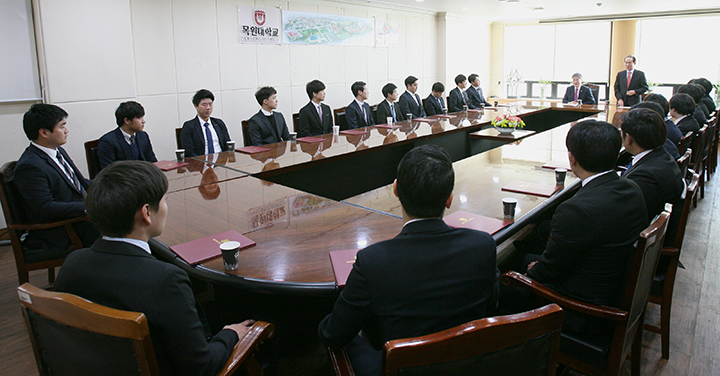2015학년도 제35대 총학생회 임명식 우리대학은 2일(화) 오후 2시 본부회의실에서 총장 및 이사장, 보직교수들이 참석한 가운데 2015학년도 학생회장 및 부학생회장 당선자들에 대한 임명식을 가졌다. 당선자 명단은 다음 과 같다. 구분 | 직책 | 이름 | 학과 | 학년 | 학번 | 1. 총학생회 | 회장 | 강백 | 기술마케팅학과 | 4 | 08 | 부회장 | 온정수 | 경찰법학과 | 3 | 10 | 2. 총대의원회 | 회장 | 강기웅 | 스포츠산업과학부 | 4 | 09 | 부회장 | 김건영 | 건축학부 | 3 | 10 | 3. 총동아리 | 회장 | 손준호 | 신소재화학공학과 | 3 | 10 | 부회장 | 김재원 | 광고홍보언론학과 | 3 | 10 | 4. 신학대학 | 회장 | 이기원 | 신학과 | 3 | 10 | 부회장 | 김선민 | 신학과 | 3 | 10 | 5. 인문대학 | 회장 | 손창현 | 영어영문학과 | 3 | 10 | 부회장 | 윤상현 | 사회복지학과 | 2 | 11 | 6. 사회과학대학 | 회장 | 김준엽 | 무역학과 | 3 | 10 | 부회장 | 조환희 | 경영학과 | 2 | 11 | 7. 테크노과학대학 | 회장 | 조병희 | 소방안전관리학과 | 3 | 10 | 부회장 | 이희승 | 생의약화장품학부 | 3 | 10 | 8. 공과대학 | 회장 | 정수환 | 정보통신융합공학부 | 3 | 10 | 부회장 | 김태수 | 지능로봇공학과 | 3 | 10 | 9. 음악대학 | 회장 | 권태근 | 관현악학부 | 3 | 10 | 부회장 | 김경택 | 작곡재즈학부 | 2 | 11 | 10. 미술대학 | 회장 | 엄성현 | 산업디자인학과 | 3 | 10 | 부회장 | 양희웅 | 만화애니메이션과 | 3 | 10 | 11. 사범대학 | 회장 | 최수호 | 영어교육과 | 3 | 09 | 부회장 | 김기두 | 국어교육과 | 3 | 10 |