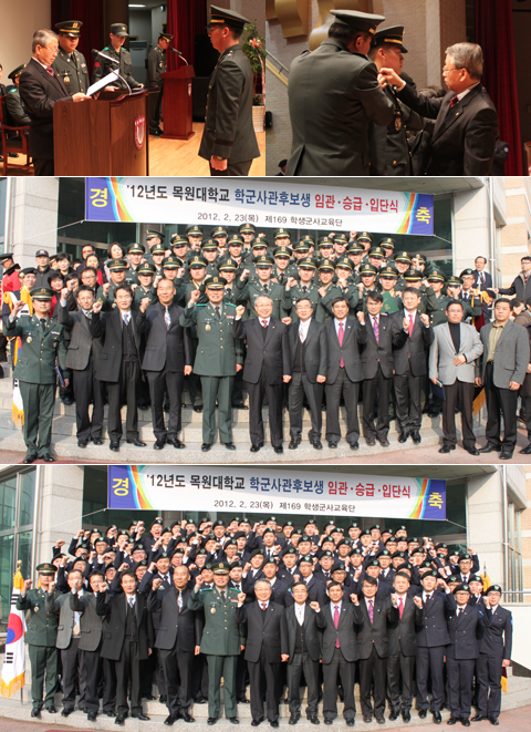 2월 23일(목) 오후 15시30분, 김원배 총장을 비롯한 ROTC 관계자들이 참석한 가운데 2012년도 학군사관후보생 임관·승급·입단식이 콘서트홀에서 열렸다.