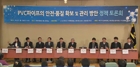 토론회에서는 강도가 떨어지고 유해성분이 포함된 재활용 PVC파이프가 대규모로 유통되면서 소비자 안전이 위협받는 실태를 개선하기 위해 국회에서 환경포럼을 주최하였다.