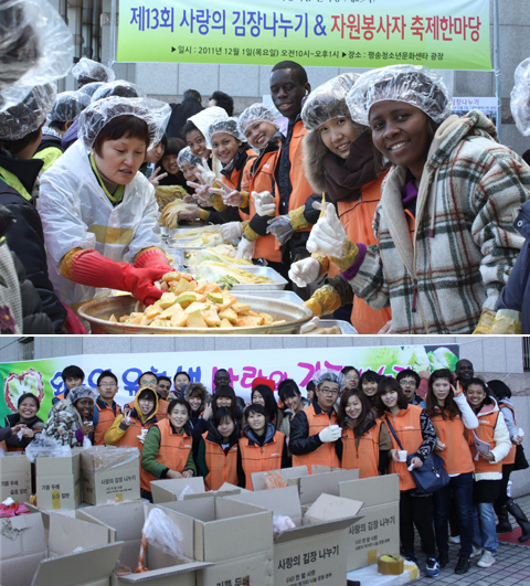 우리 대학에 재학 중인 외국인 유학생 40여명은 12월 1일(목) 오전 10시부터 평송청소년문화센터에서 열린 ‘제13회 사랑의 김장나누기 및 자원봉사자 축제한마당’에 참가하여 비록 서툰 솜씨지만 김장 김치를 담그며 사랑의 마음을 함께 나눴다.