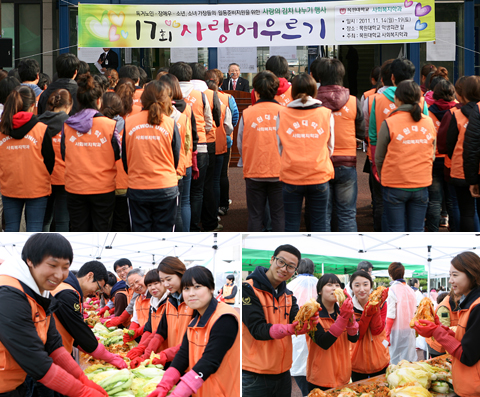 주위의 어려운 이웃을 돕기 위한 사랑의 김장김치 나눔 행사를 17년째 이어오고 있는 우리 대학교 사회복지학과(학과장 김동기)에서는 지난 18일(금) 오전 10시부터 교내 학생회관 앞에서 김장김치 담그기 행사인 ‘제17회 사랑 어우르기’를 진행하였다.