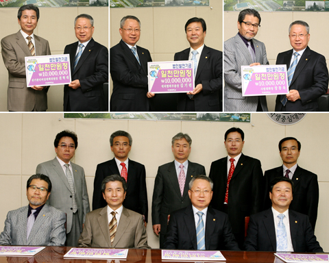 10월 12일(수) 오후 3시 본부회의실에서 김원배 총장과 정책위원들이 참석한 가운데 김기련(대외협력부총장), 권혁대(위기관리비상대책위원장), 장동욱(사범대학장)교수가 ‘법인발전기금’ 1천만원씩 기부하였다.