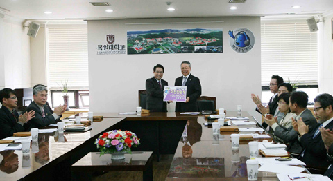 김원배 총장은 오늘(12일. 수) 오전 10시 대학 본부 회의실에서 열린 전체 교무위원회에서 학교법인 감리교학원 박거종 이사장에게 법인 발전기금으로 2천만원을 기부하였다.