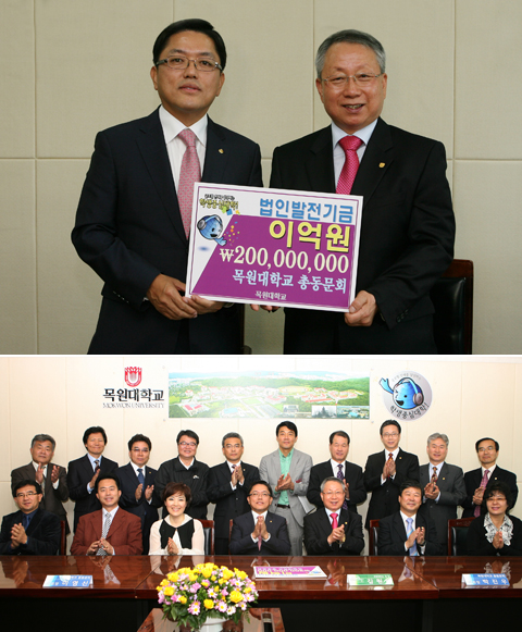 우리 대학교 총동문회 박도봉 회장(동양강철그룹 회장)은 박진우 부회장 등 주요 임원들과 함께 10월 24일(월) 오전 10시 30분에 본부회의실에서 김원배 총장에게 2억원의 발전기금을 전달하였다.