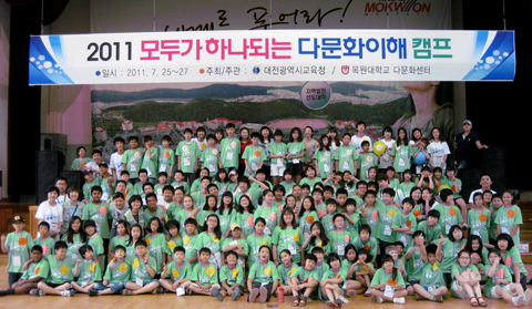 우리 대학교 다문화사회통합연구교육센터(센터장 이희학)는 지난 25일(월)부터 27일(수)까지 2박 3일간의 일정으로 대전광역시교육청과 함께 다문화가정 학생 150여명을 초청, 교내 콘서트홀과 체육관 등에서 ‘모두가 하나 되는 다문화이해 캠프’를 열고 있다.