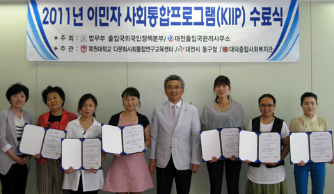 다문화사회통합연구교육센터(이희학 센터장)는 지난 6월 13일(월) 2011년 상반기에 실시한 이민자 사회통합프로그램 최종단계 이수자들에게 수료증을 전달했다.