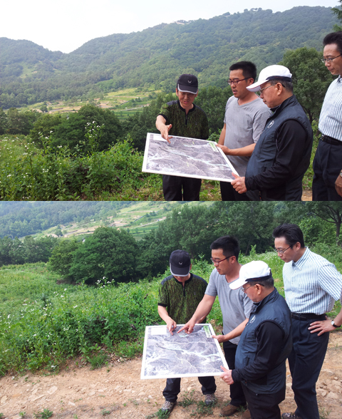 김영현 기획예산처장, 이춘규 기획관리과장과 법인사무국에서 근무하여 당시 측량 업무네 동행했던 김종성 학생복지과 직원이 수행하였다.