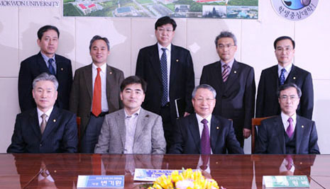 8일 화 오후 2시 본부회의실에서 김원배 총장을 비롯한 교내 보직자들이 참석한 가운데 토마토도시락/이삭목원대점 사장 변기환씨가 ‘구(舊) 신학관’ 복원 기금으로 500만원을 기부하였다.