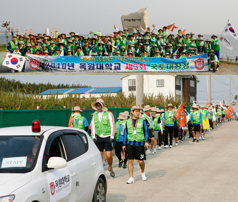 지난 2008년엔 전남 해남군 땅끝 마을에서 우리대학까지 남에서 북으로 351km를, 2009년도엔 강원도 고성 통일전망대에서 출발하여 우리대학까지 북에서 남으로 432km를, 올해에는 경북 포항 호미곶에서 출발하여 우리대학까지 동에서 서로 이어지는 460km의 대장정에 나선다.