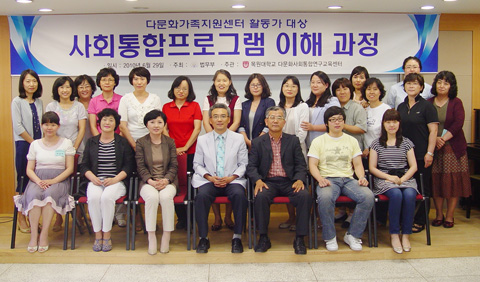 우리 대학 다문화사회통합연구교육센터(이희학 센터장)는 지난 29일(화) 법무부의 요청으로 대전․충남지역의 다문화가족지원센터 및 유관기관의 활동가들을 대상으로 사회통합프로그램 이해교육을 실시하였다.
