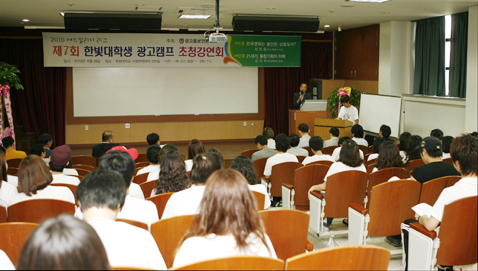 광고홍보언론학과(학과장 배성우)는 28일(월) 오후 2시부터 내달 1일(수)까지 사회과학관 205호에서 ‘2010 애드칼리지 리그(AD College League) ‘제7회 한빛 대학생 광고 캠프’를 열었다.