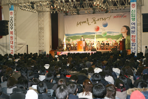 2009학년도 신입생 오리엔테이션이 16일(월) 오후 2시부터 본교 체육관에서 이요한 총장을 비롯한 주요 보직자들이 참석한 가운데 열렸다.