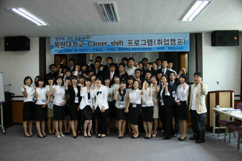 목원대학교 취업경력개발센터에서 지난 6월 25일 ~27일까지(2박3일) 충북 단양 대명리조트에서 제 3기 career Shift Program(취업캠프)이 개최되었습니다. 입사서류 클리닉부터 면접까지 취업 대비 마스터 과정으로 구성된 이번 캠프는 캠프에 참여한 50명의 학생들의 뜨거운 호응을 얻었습니다.[1일차][실전프로그램]10초만에 합격하는 입사서류작성법[리더십프로그램]나는 내 삶의 무대에서 주인공인가[TeamProject]99초를 잡아라![팀별실습]취업성공 전략 Plan[2일차][이미지메이킹실습]첫인상으로 인사담당자를 사로잡아라! [실전프로그램]백전백승 유형별 면접전략[면접실습]면접 Role Play 실습[스피치실습]합격을 부르는 Power speech[팀별실습]입사서류 작성