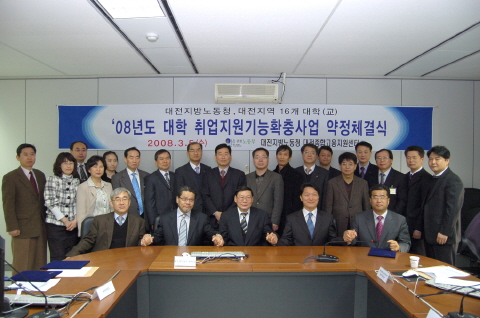 2008년 3월 5일 대전지방노동청 고용안정지원센터에서 학생처 장동욱 처장과 취업경력개발센터 김선명 계장이 참석한 가운데 목원대학교와 대전지방노동청이 대학취업지원기능확충사업 약정 체결식을 가졌습니다.
