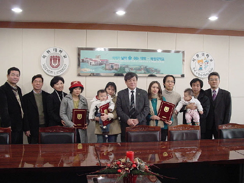 이요한 총장은 지난 9일(수) 오전 10시 본부 회의실에서 이주여성연구소(소장 이희학) 한국어 교실 수강생 3가정에 친정 방문경비를 전달하였다.