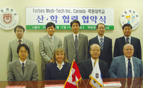 포브스메디텍 설립자 쿠트니 박사와 연구소장 오찬스키 박사가 직접 방한하여 체결되는 본 협약에 따라 송 교수팀이 개발한 혈중 콜레스테롤을 크게 떨어뜨리고 동맹경화까지 억제하는 신물질에 대한 제조연구는 목원대 연구팀에서 담당하고 세부적인 임상실험과 상용화 그리고 연구비 전액은 캐나다 포브스메디텍에서 맡게됩니다.