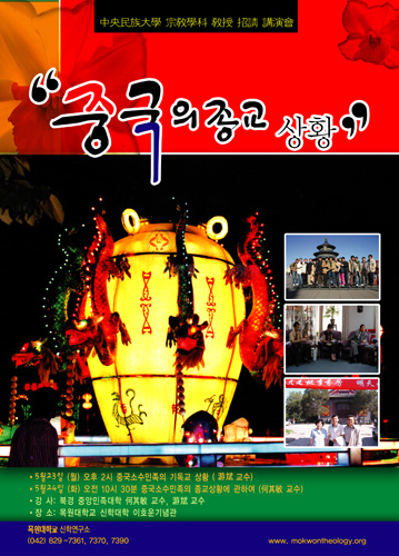 한편, 목원대 신학대학(학장 김흥수)은 아시아 선교 일환으로 지난해부터 매학기 마다 학생과 교수들로 구성된 선교여행단을 중국에 보내고 있으며, 특히 올해부터는 중국인민대학, 중앙민족대학, 산동신학교의 종교학자 및 신학자들과 학술교류 및 종교교류를 활발히 전개하고 있습니다.