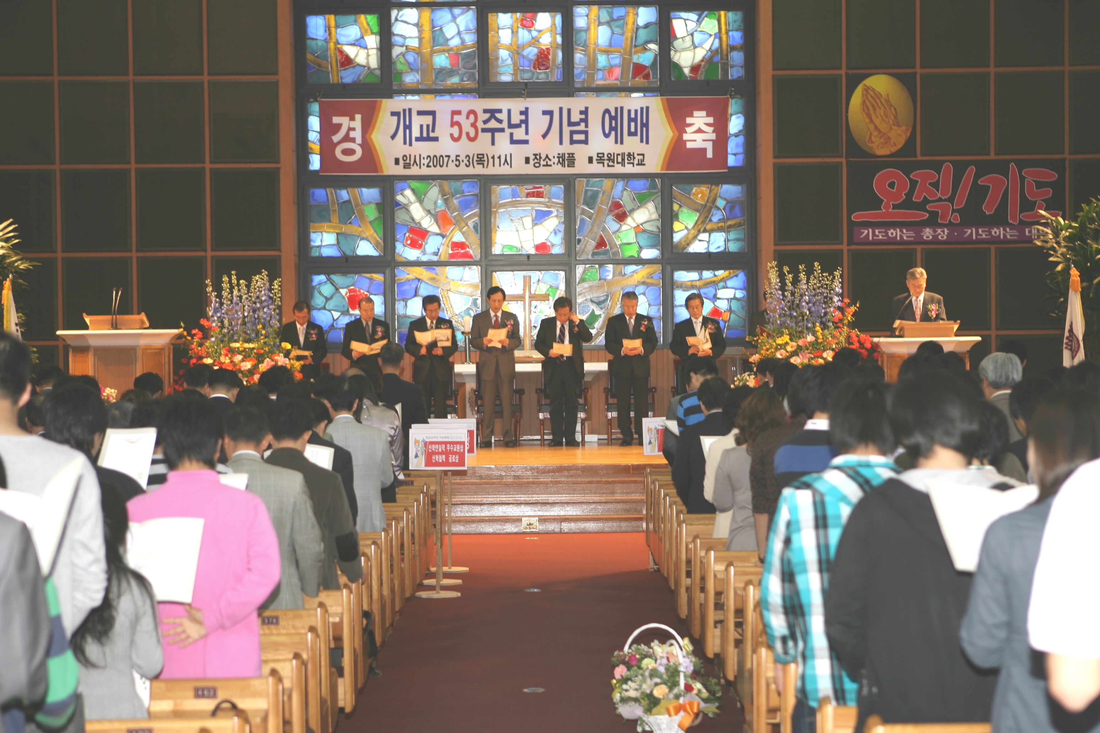 목원대학교는 5월 3일 오전 11시 학교법인 감리교학원 백문현 이사장을 비롯한 학생과 교직원 800여명이 참석한 가운데 채플에서 개교 53주년 기념식이 가졌습니다.