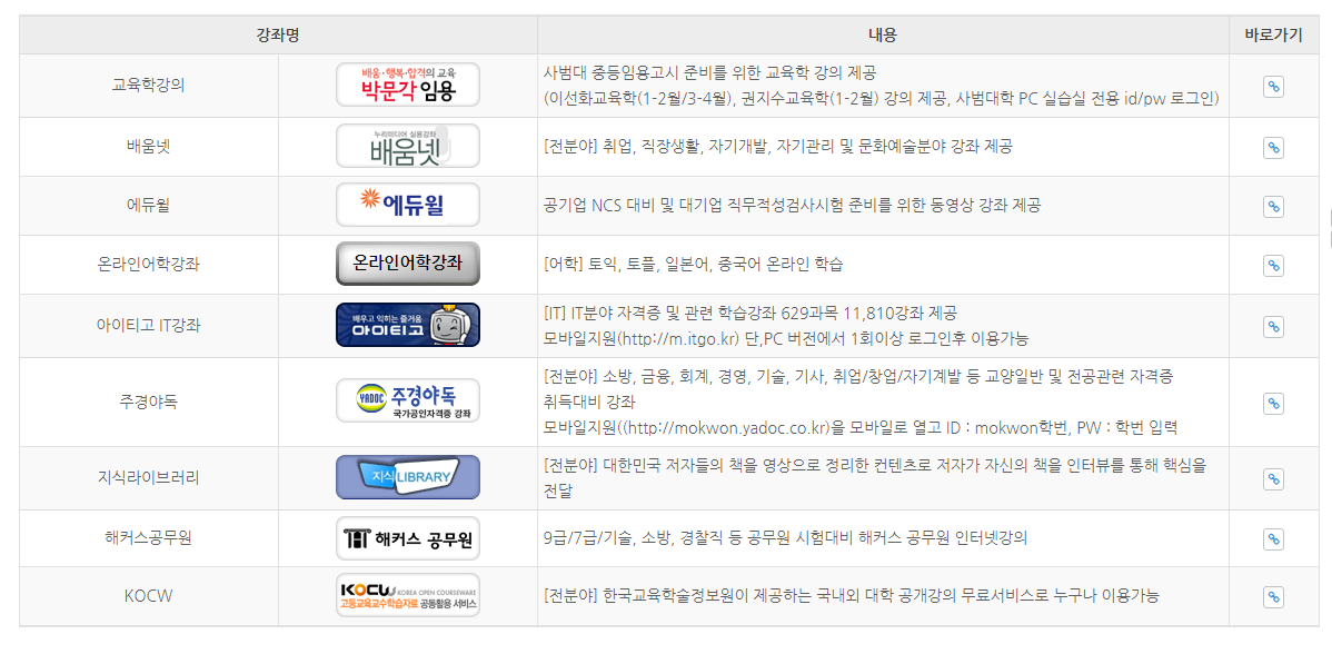 | 이름 | 제공사 | 제공강좌 | 특징 |