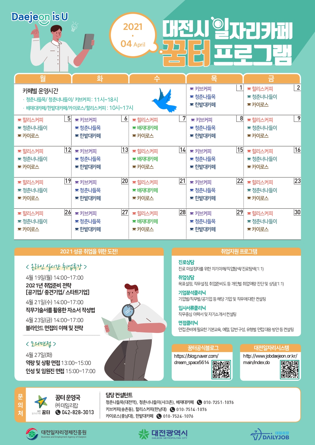 1. 내 용 : 2021년 대전일자리카페 꿈터 4월 프로그램 운영 안내