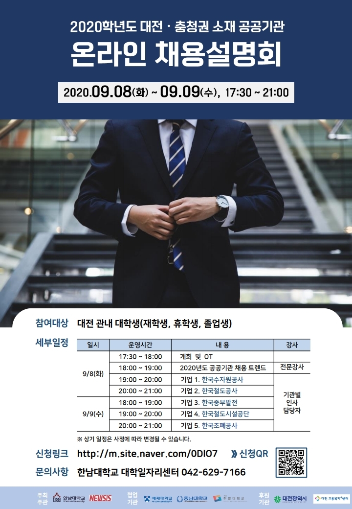 가. 사 업 명: 2020학년도 공공기관 취업을 위한 대전·충청권 소재 공공기관 온라인 채용설명회