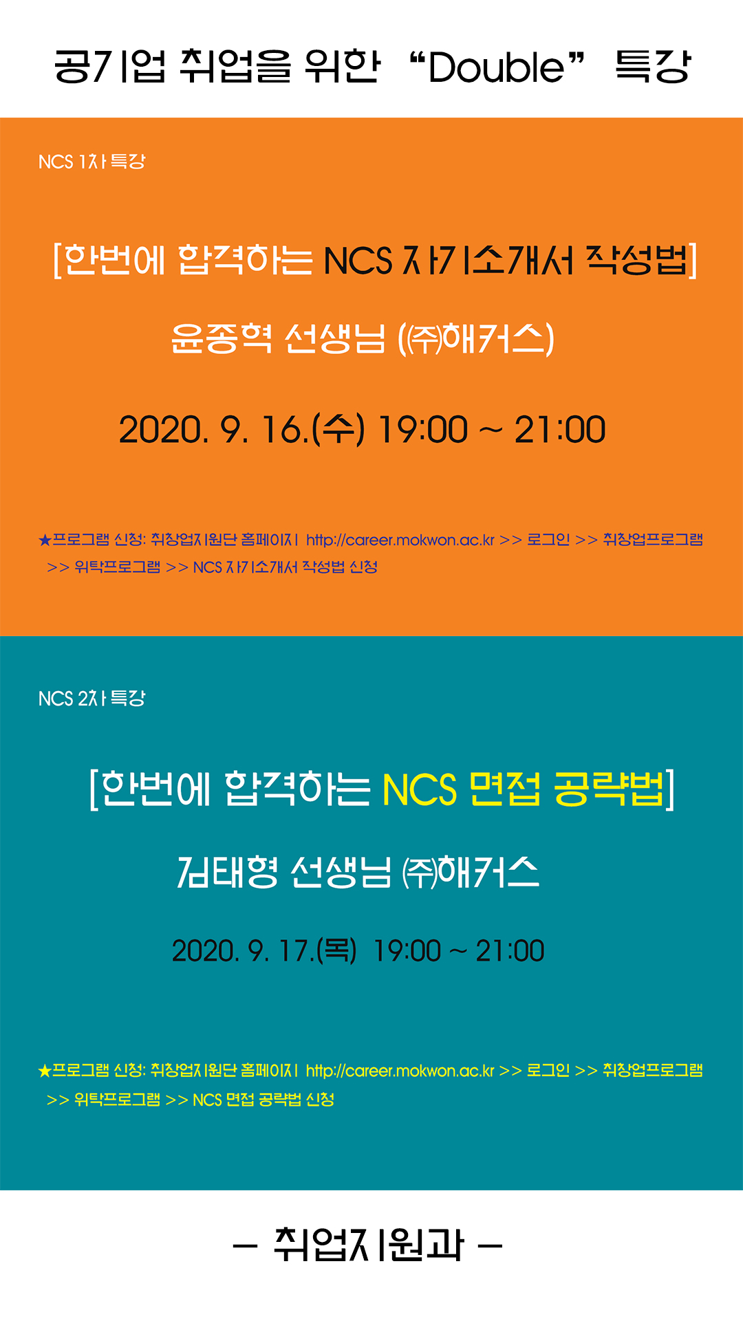 1) 참여자에게는 취업역량마일리지 적립 가능(강의 참여 후 수료증이나 확인증 jobgo@mokwon.ac.kr)