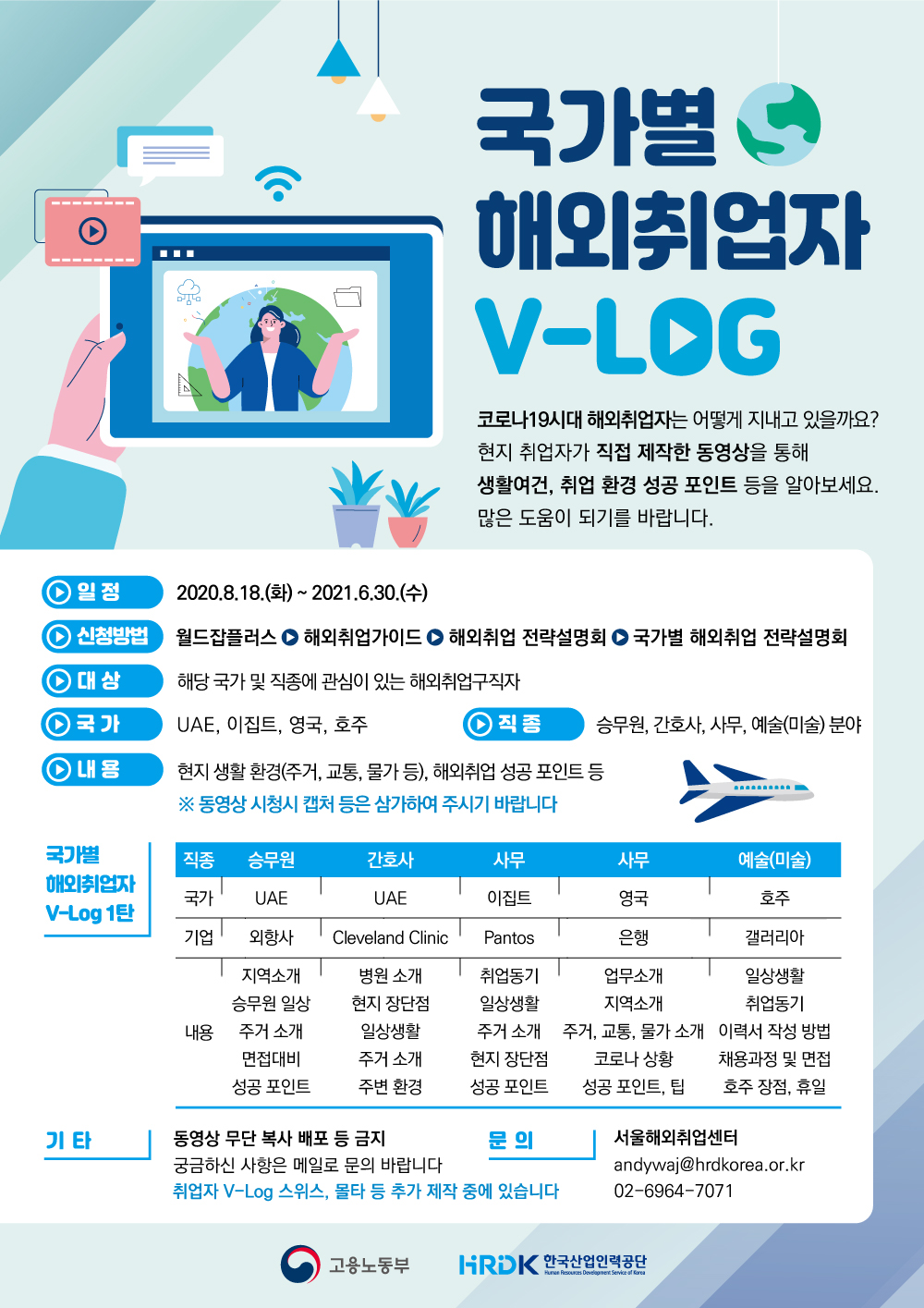 2. 국가별 해외취업자 V-LOG 포스터 1부.