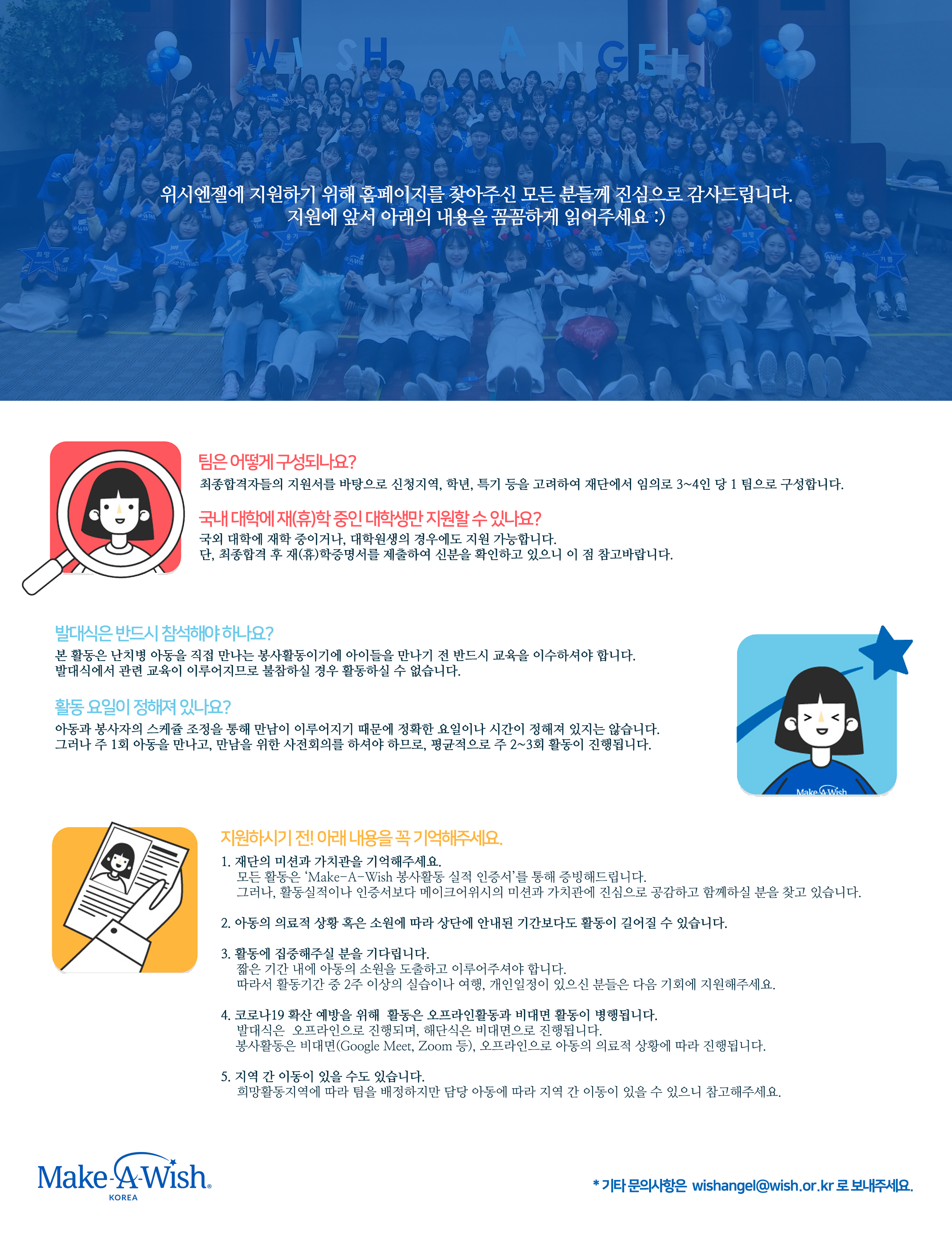 메이크어위시 재단은 난치병 아동들의 소원을 이루어주는 세계 최대 소원 성취 전문기관입니다. 35기 EDM 위시엔젤을 모집하고 있으니 많은 참여 부탁드립니다.