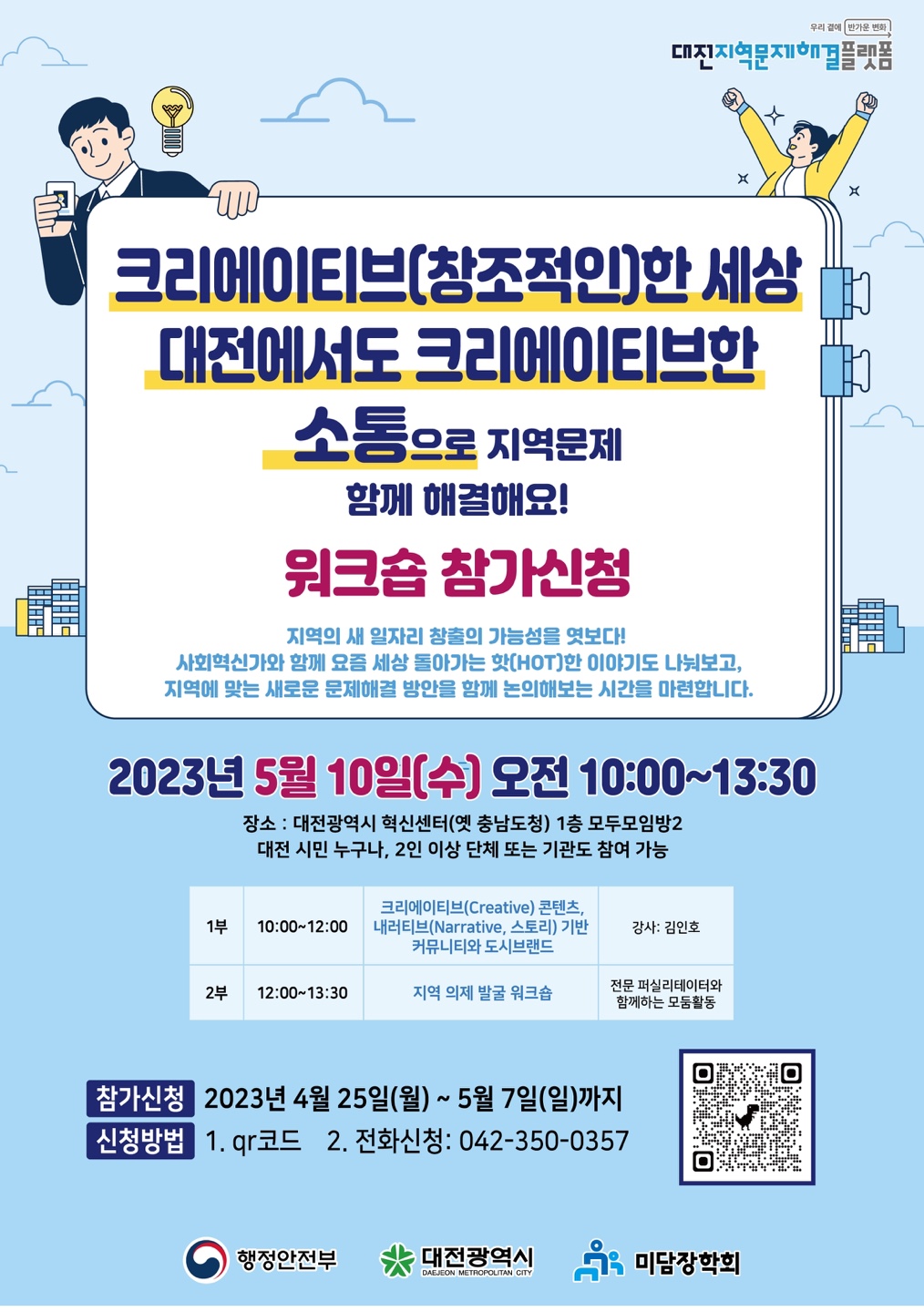 [대전지역문제해결플랫폼-시민의제발굴 워크숍 참여자 신청] 안녕하십니까! 대전지역문제해결플랫폼 사무국 입니다.