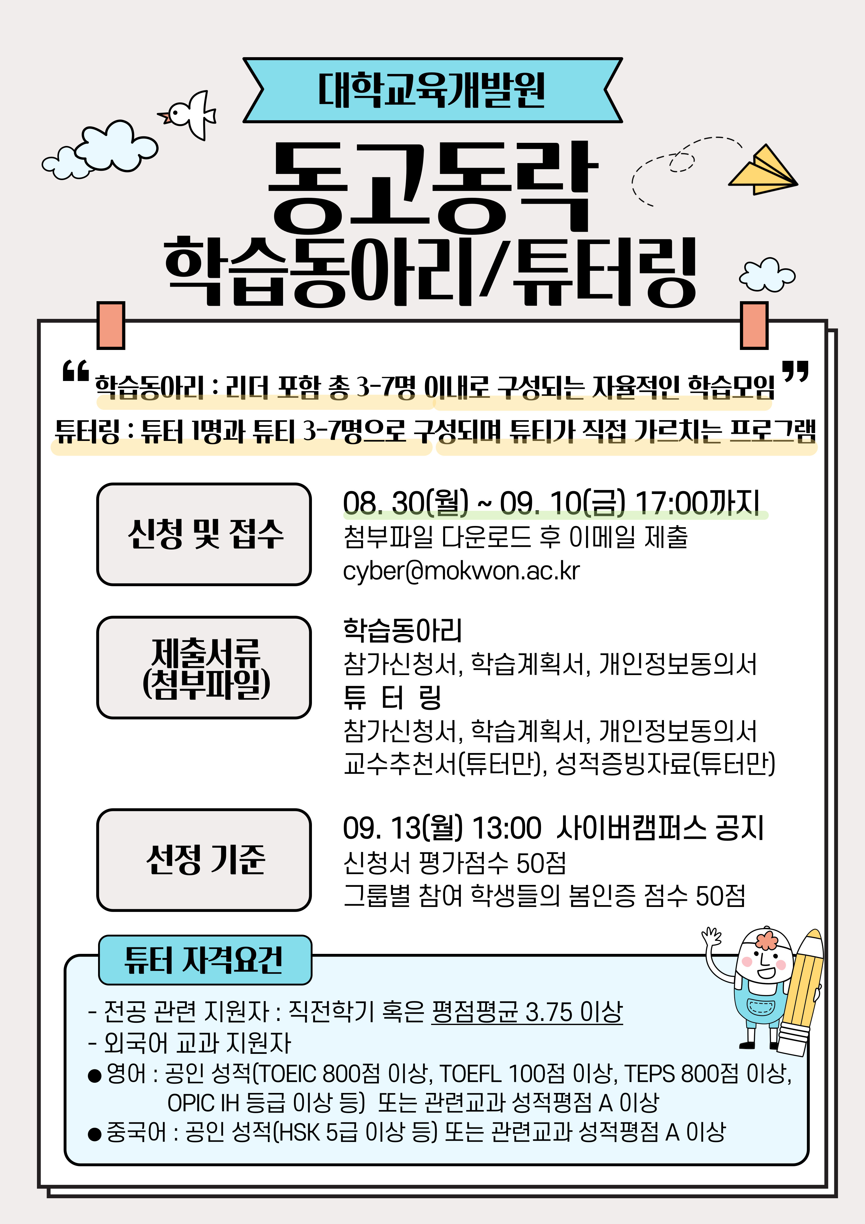 2) 튜 터 링 : 신청서 작성 후, 이메일 제출 (cyber@mokwon.ac.kr)