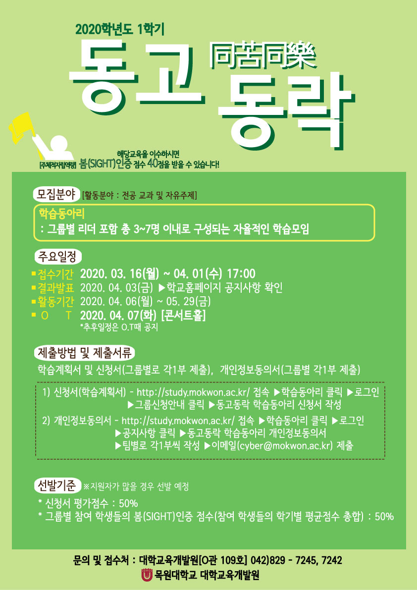 목원대학교 대학교육개발원에서 2020-1학기 다차원 통합활동 "동고동락" 프로그램을 운영한다고 합니다!