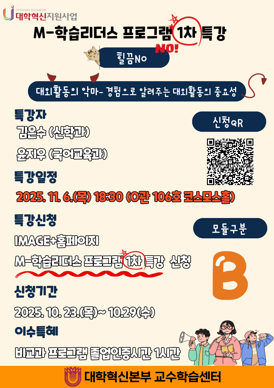 4. 신청방법: '학생역량&경력개발시스템' 홈페이지 접속 > 상단 '역량개발' - '비교과 프로그램 신청' > M-학습리더스 프로그램(1차) 신청
