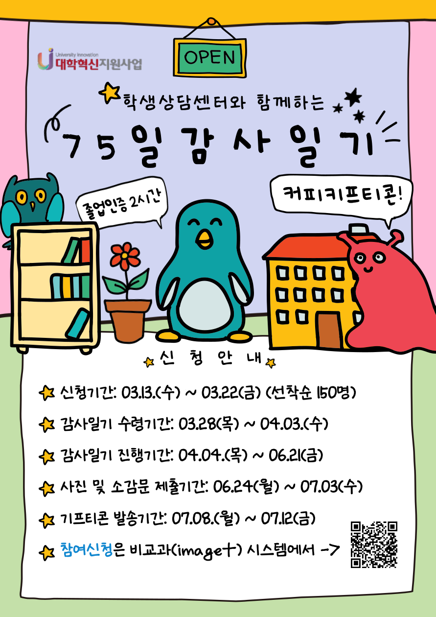 붙임 1. 2024-1학기 75일 감사일기 홍보 포스터 1부.