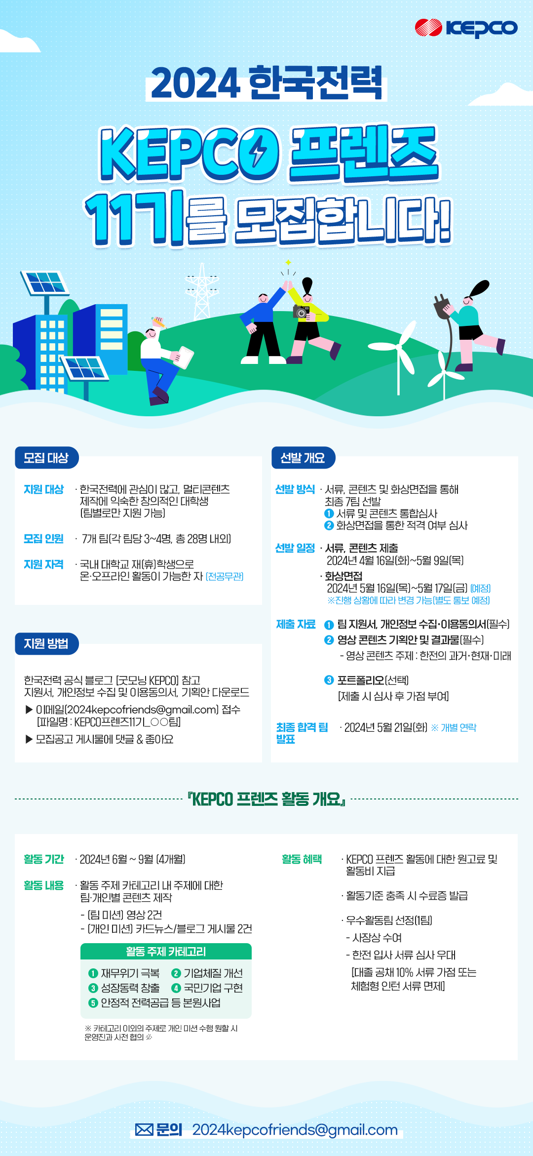 붙임 : KEPCO 프렌즈 11기 모집 포스터 1부. 끝.