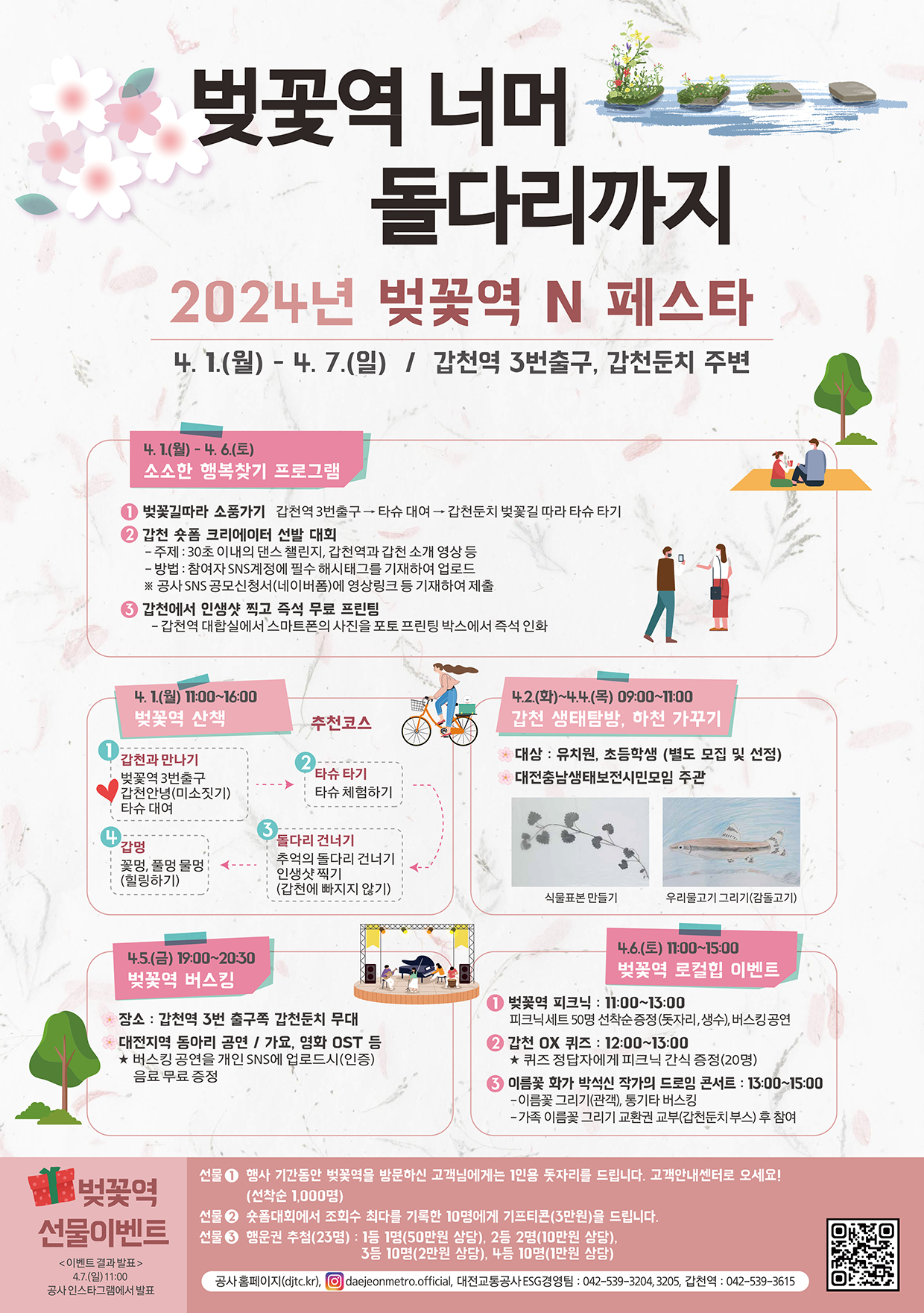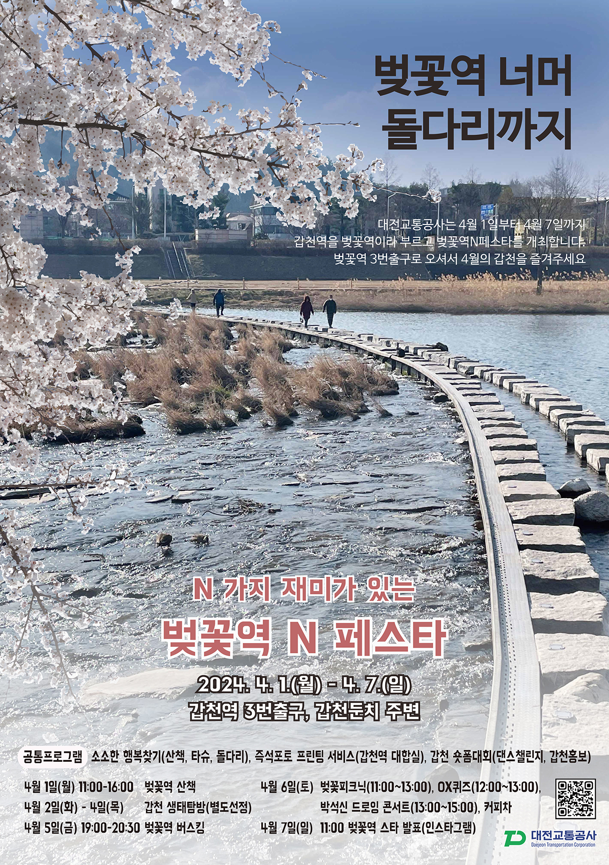 • 기 간 : 2024. 4. 1.(월) ~ 4. 7.(일) / 7일간 (행사기간동안갑천역 → 벚꽃역)