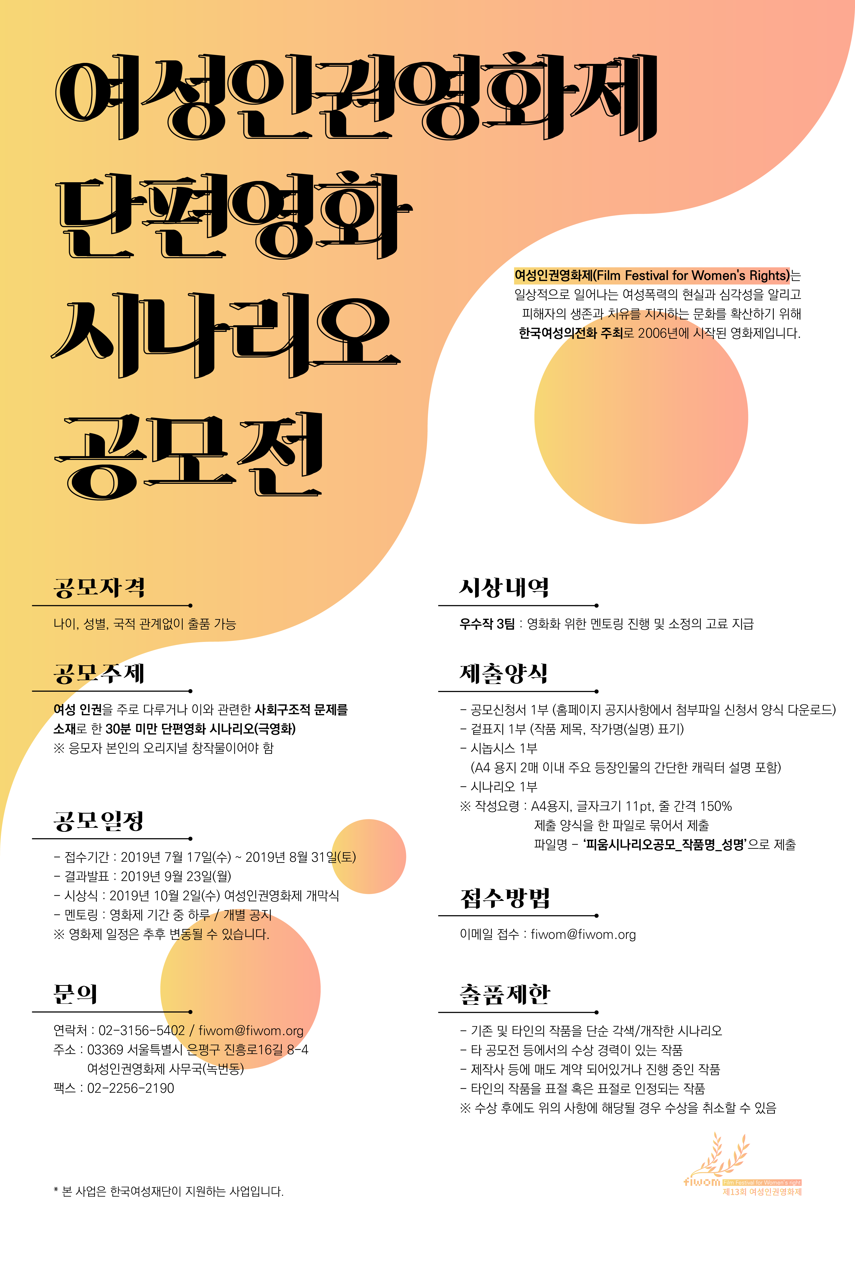 연락처: 02-3156-5402 / fiwom@fiwom.org
