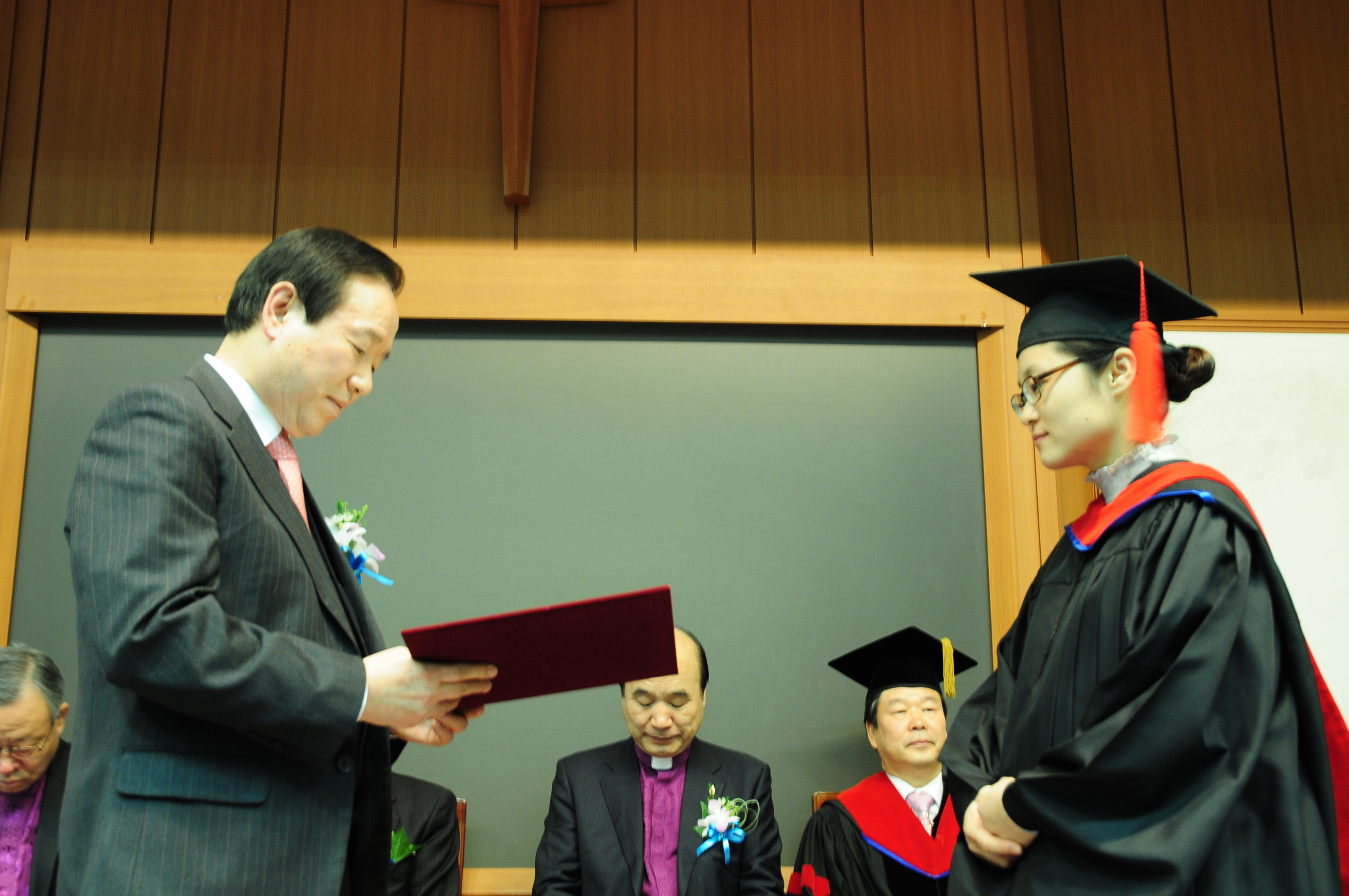 WESLEY GRADUATE SCHOOL OF신학대학원 2013학년도 학위수여식이 20일(목) 신학대학 채플실(A314호)에서 열렸다. 이날 졸업식에는 박영태 이사장, 한양수 감독(남부연회), 배종화 목사(남부연회동문회장) 등이 참석하였다.