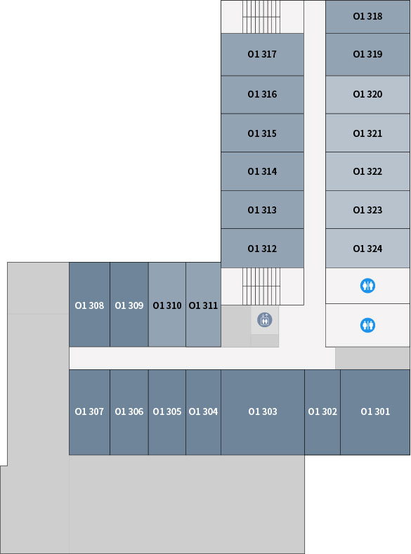 | O1-301 | 보육실 | O1-302 | 학생창업공간 | O1-303 | 학생창업공간 |