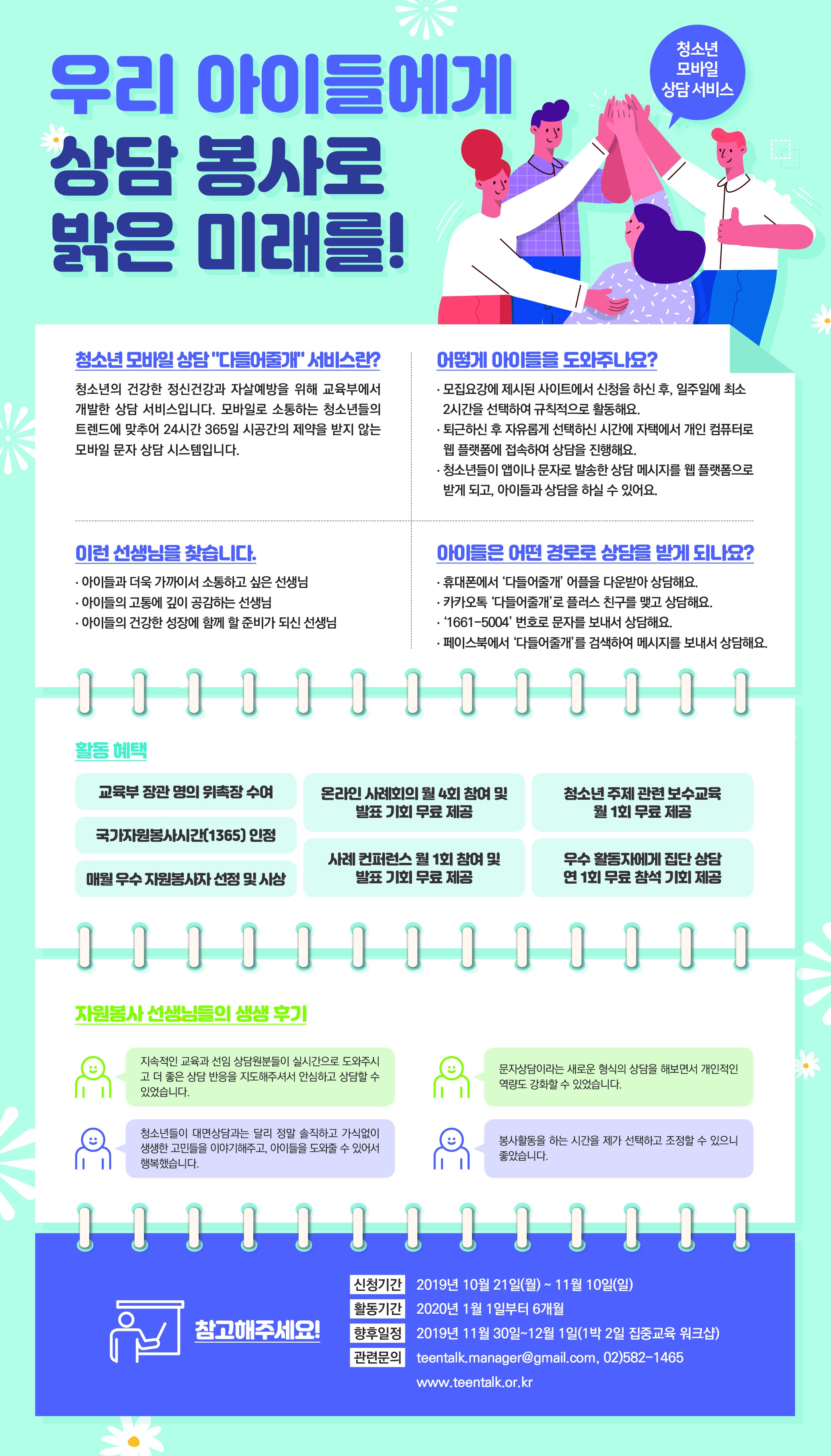 바. 자원봉사자 모집 관련 문의처 : 청소년 모바일 상담센터(☎ 02-582-1465) |