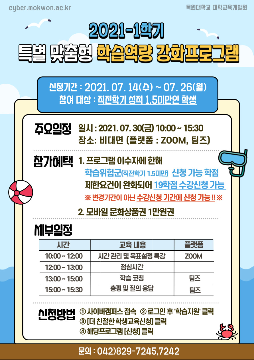 다. 참여대상 : 2021-1학기 학습위험군(학사경고자) : 해당 학생은 학과별로 안내예정